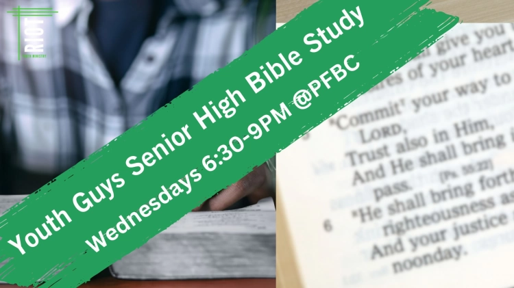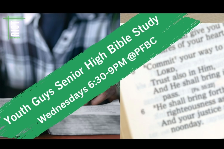 On Wednesday nights, the guys get together at PFBC for dinner and Bible study. 6:30-9 PM